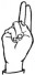 На ћирилици написано ЈАКОВ ГЛУШИЋ састоји се из 11 слова [?]. Исписано ћириличном једноручном азбуком за глувонеме: